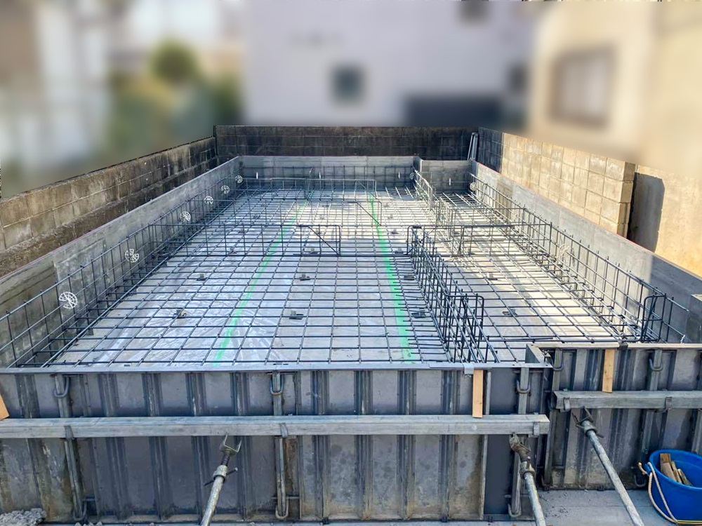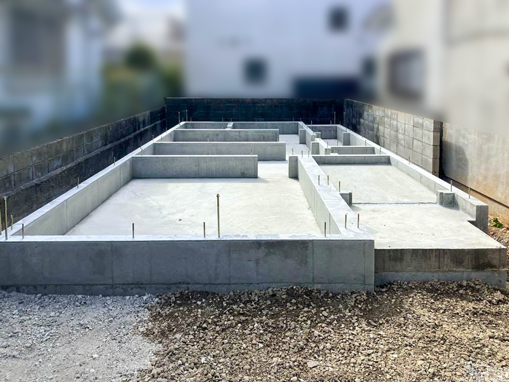 コンクリートを流して固め、建物の基盤となる土台が完成しました。