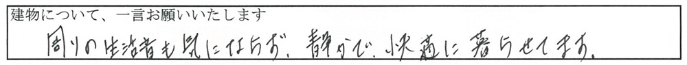 周りの生活音も気にならず、静かで快適に暮らせてます。
