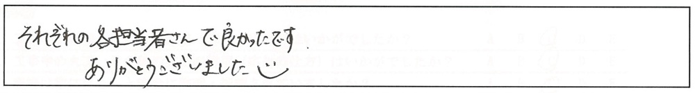 それぞれの各担当者さんで良かったです。ありがとうございました。