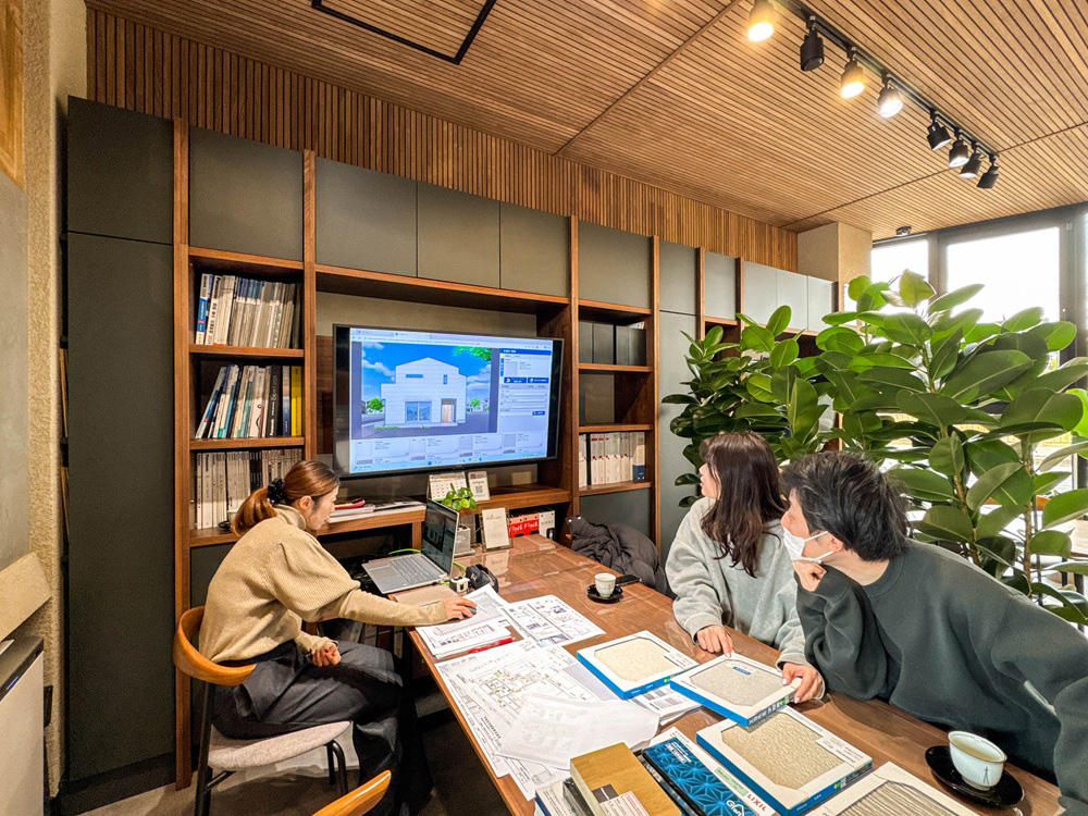 外装や内装、設備、電気計画など、住まいの“印象”や“住み心地”を左右する大切な工程です。これから数回にわたり、インテリアコーディネーターとじっくりと打ち合わせを重ねていきます。
