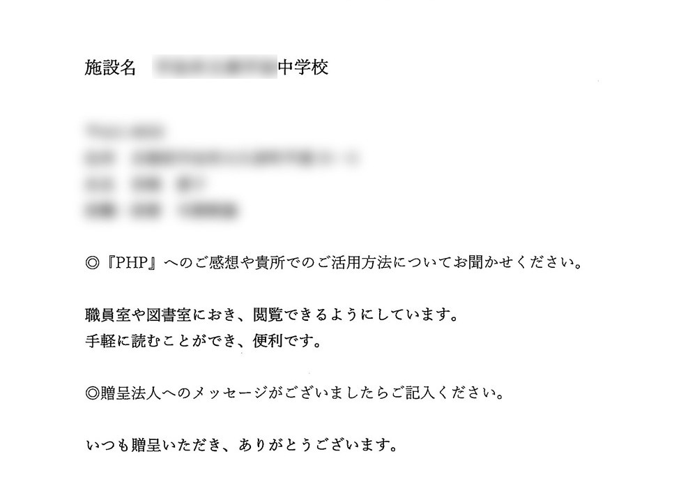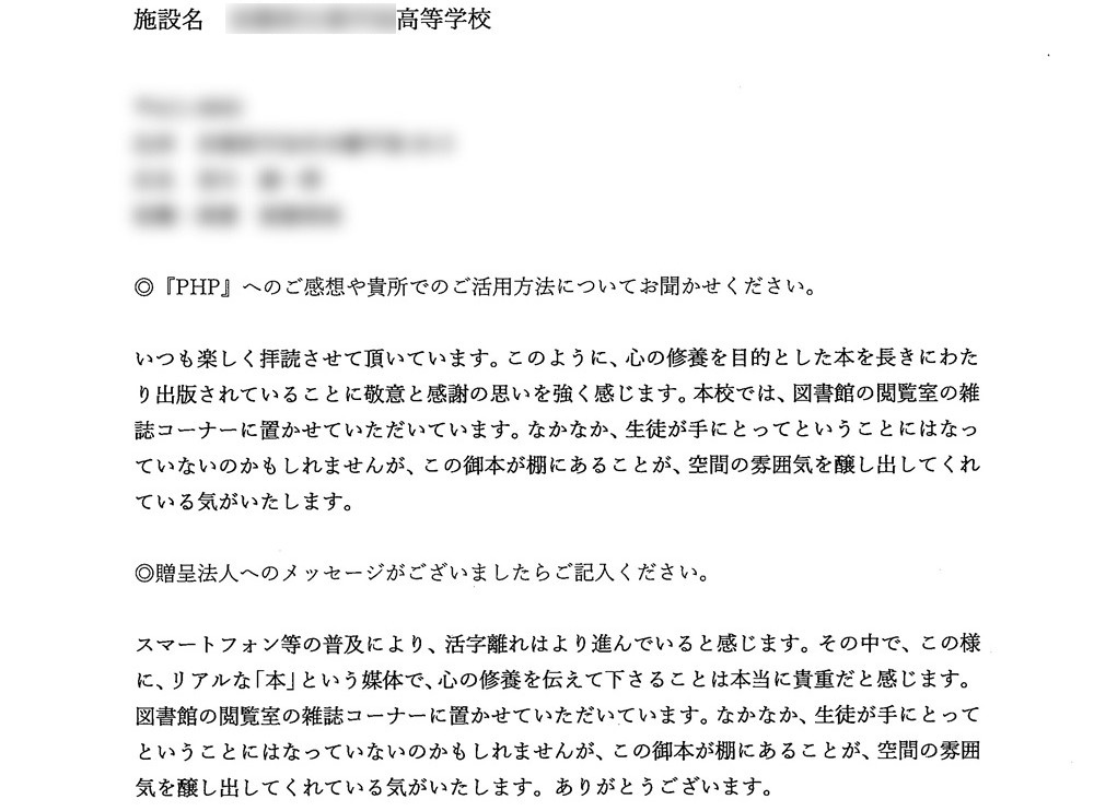「月刊誌PHP」寄贈のお礼メッセージをいただきました
