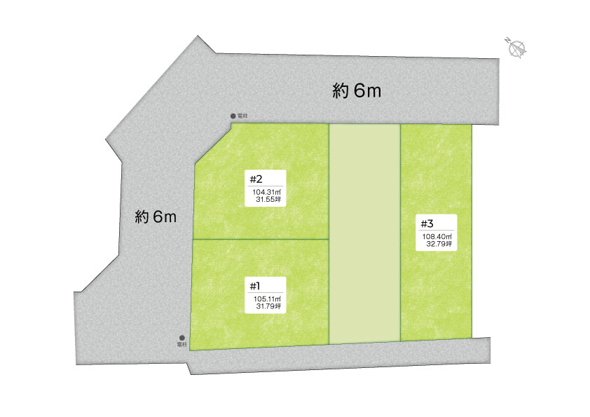 | 敷地面積 | 104.31㎡(31.55坪)〜 108.40㎡(32.79坪) |
