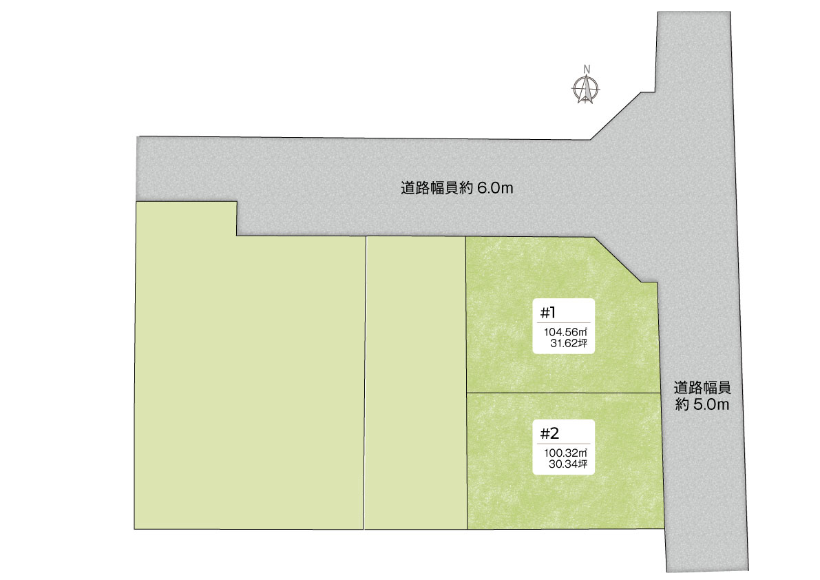 | 道路幅員 | 北側道路幅員約6m、東側道路幅員約5m |