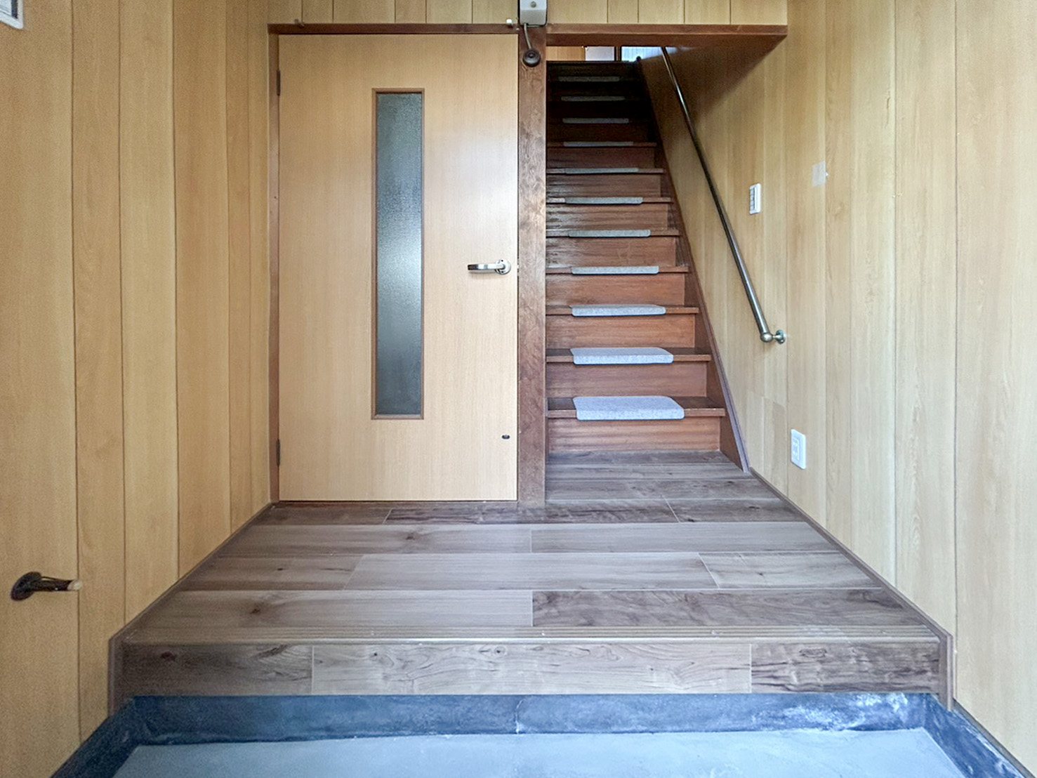 毎日通る玄関にPanasonic製フローリングを採用し、玄関から明るく上質な印象に。