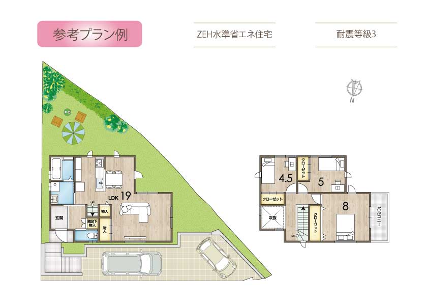 | 諸費用 | 外構工事費、水道負担金、地盤改良費、各種申請費は別途必要(参考プラン建物価格には、一部オプション価格を含みます。) |