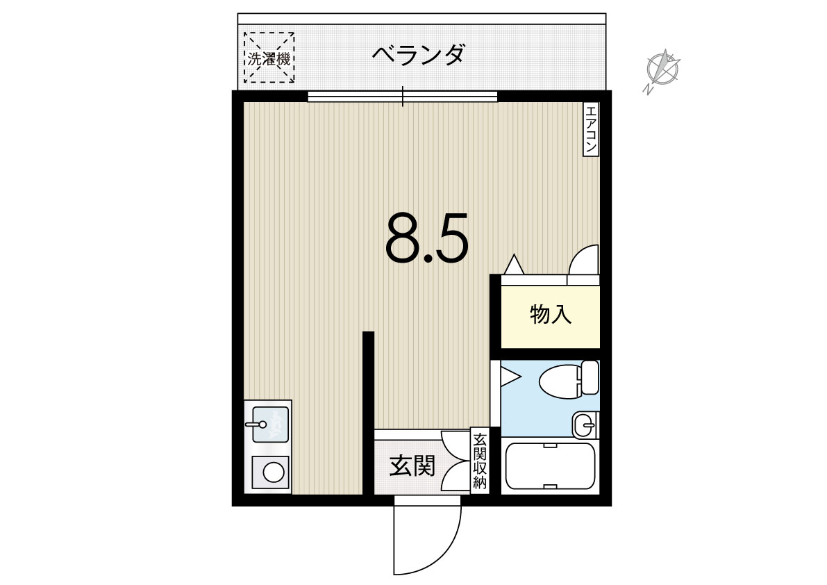 キッチン、ユニットバス、洗面台、トイレ、エアコン、天井・壁クロス、網戸