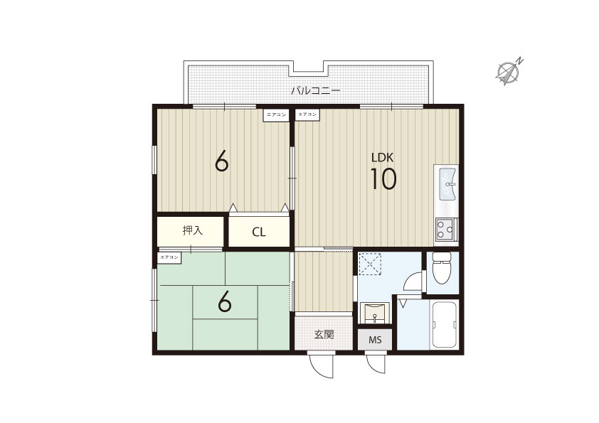 ファミリー向け、2LDKのマンション。収納も完備です。
